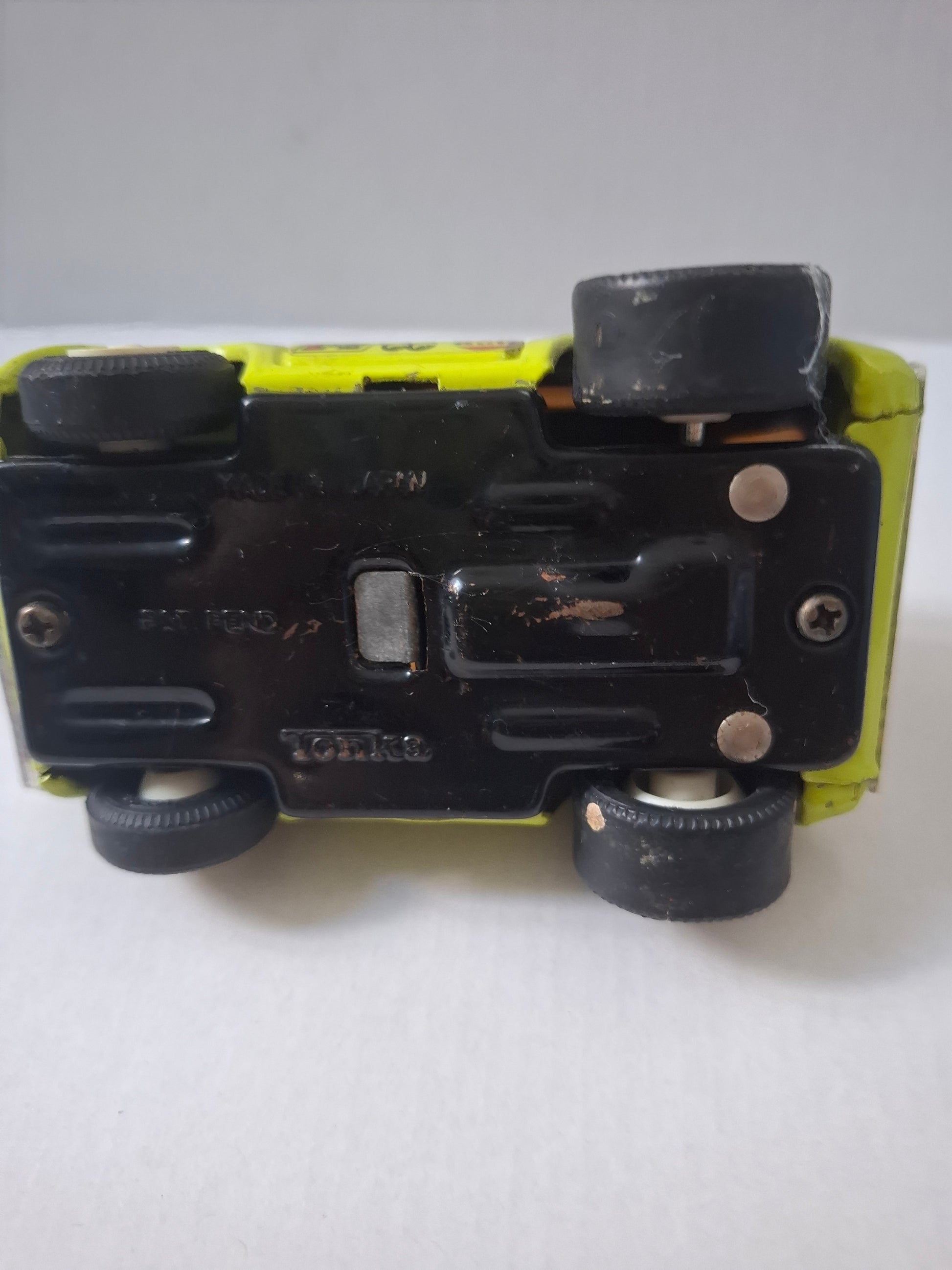 Introducing a remarkable collectible for enthusiasts and collectors alike: this vintage Tonka car is a true gem. Featuring a vibrant lime green AMC Gremlin, this retro Tonka vehicle is crafted from durable pressed steel and incorporates a fun friction car mechanism for added excitement. Despite its age, this antique Tonka toy remains in excellent condition, making it perfect for display or play.